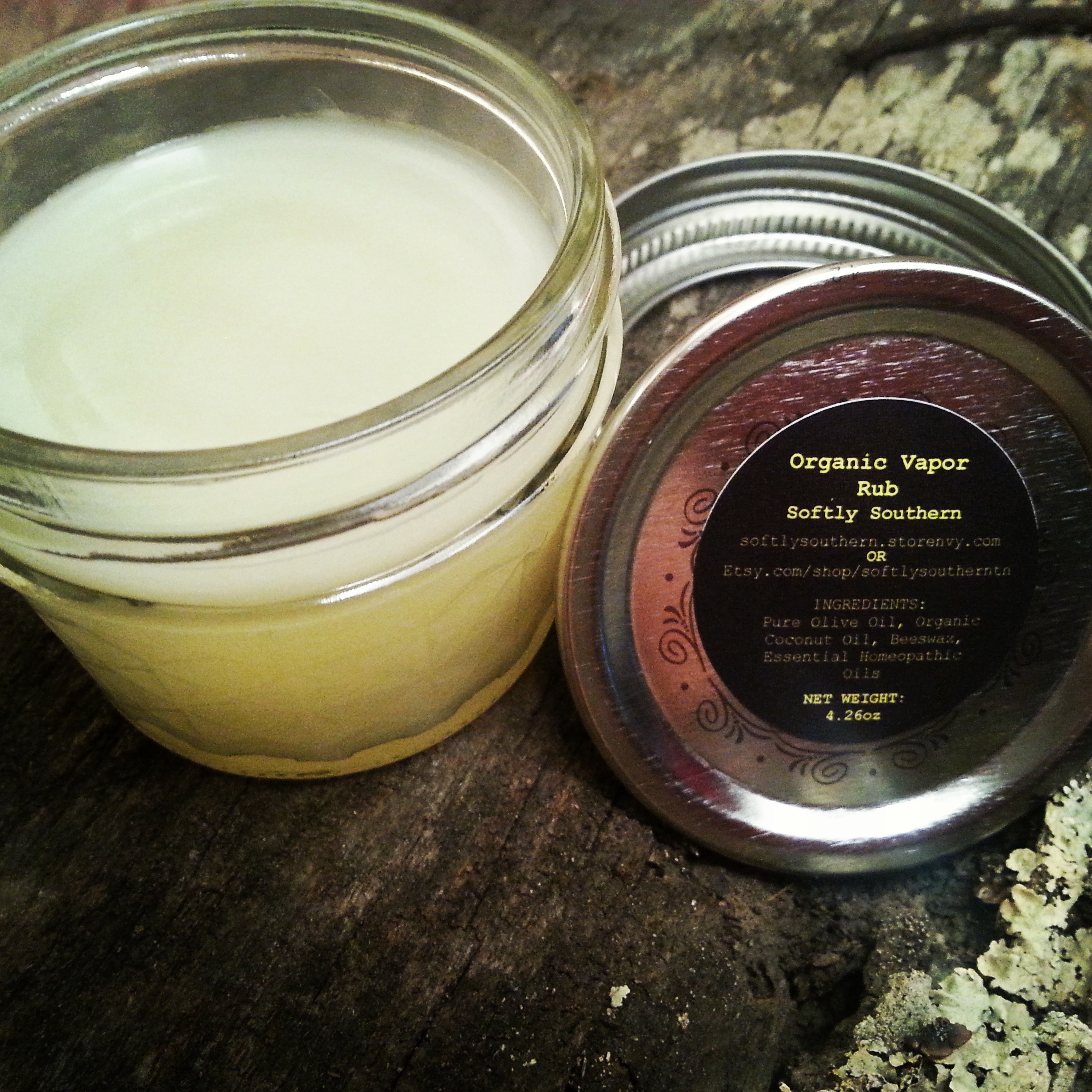Time to throw those tissues in the trash and grab some Softly Southern, Organic Vapor Rub! By applying a small amount on your chest and neck it immediately opens your airways letting in that oh so missed frsh oxygen! You can feel the peppermint cooling on contact, soaking in your skin & soothing your aching body. Place a little on each temple to ease that headache and then a little on your feet under your socks, and come a couple hours it will have detoxed alot of the "crud" out of your body!